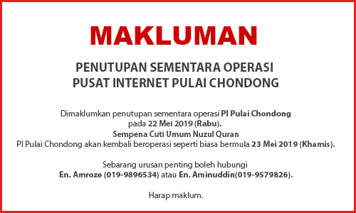 Notis Penutupan Pusat Internet Pada 22 Mei 2019